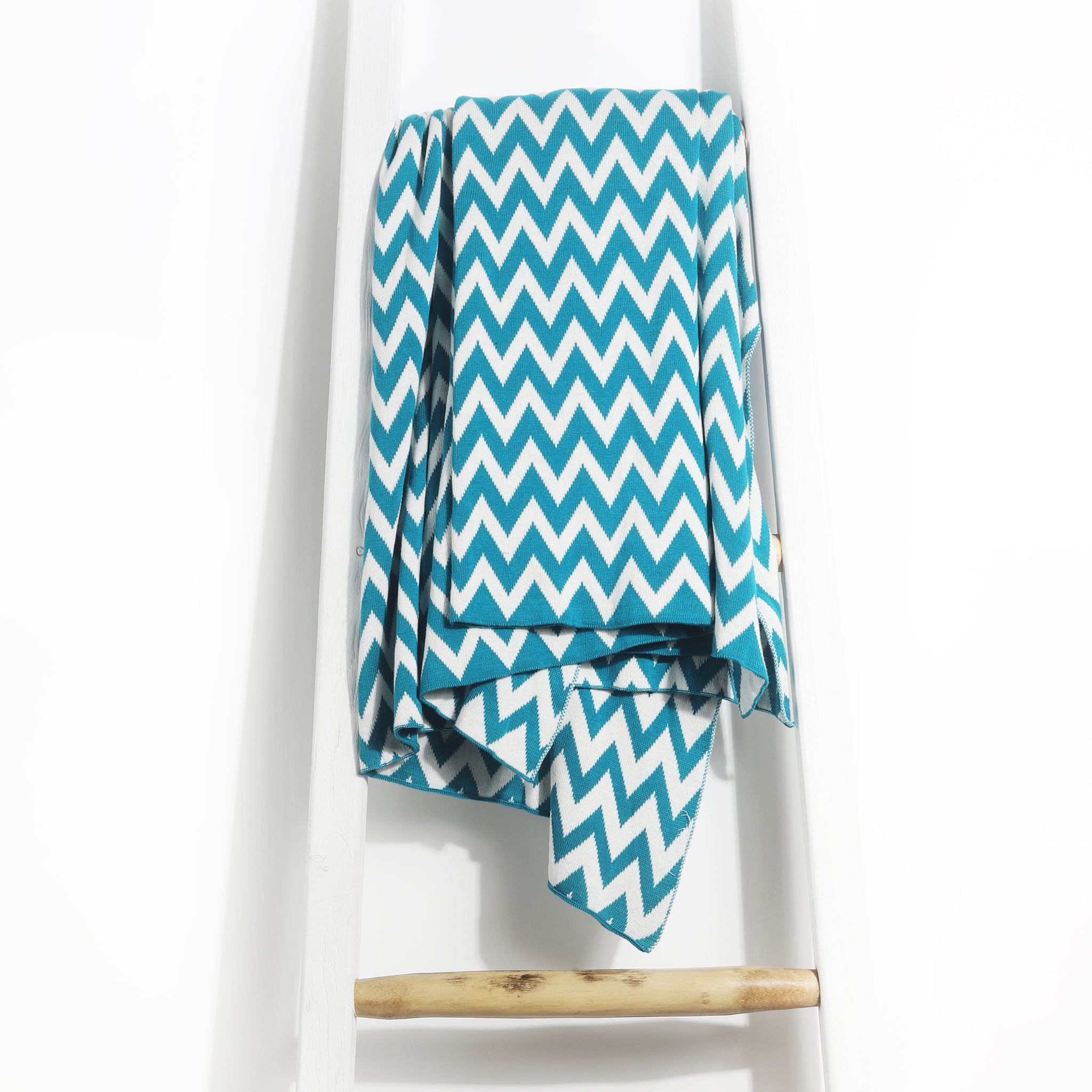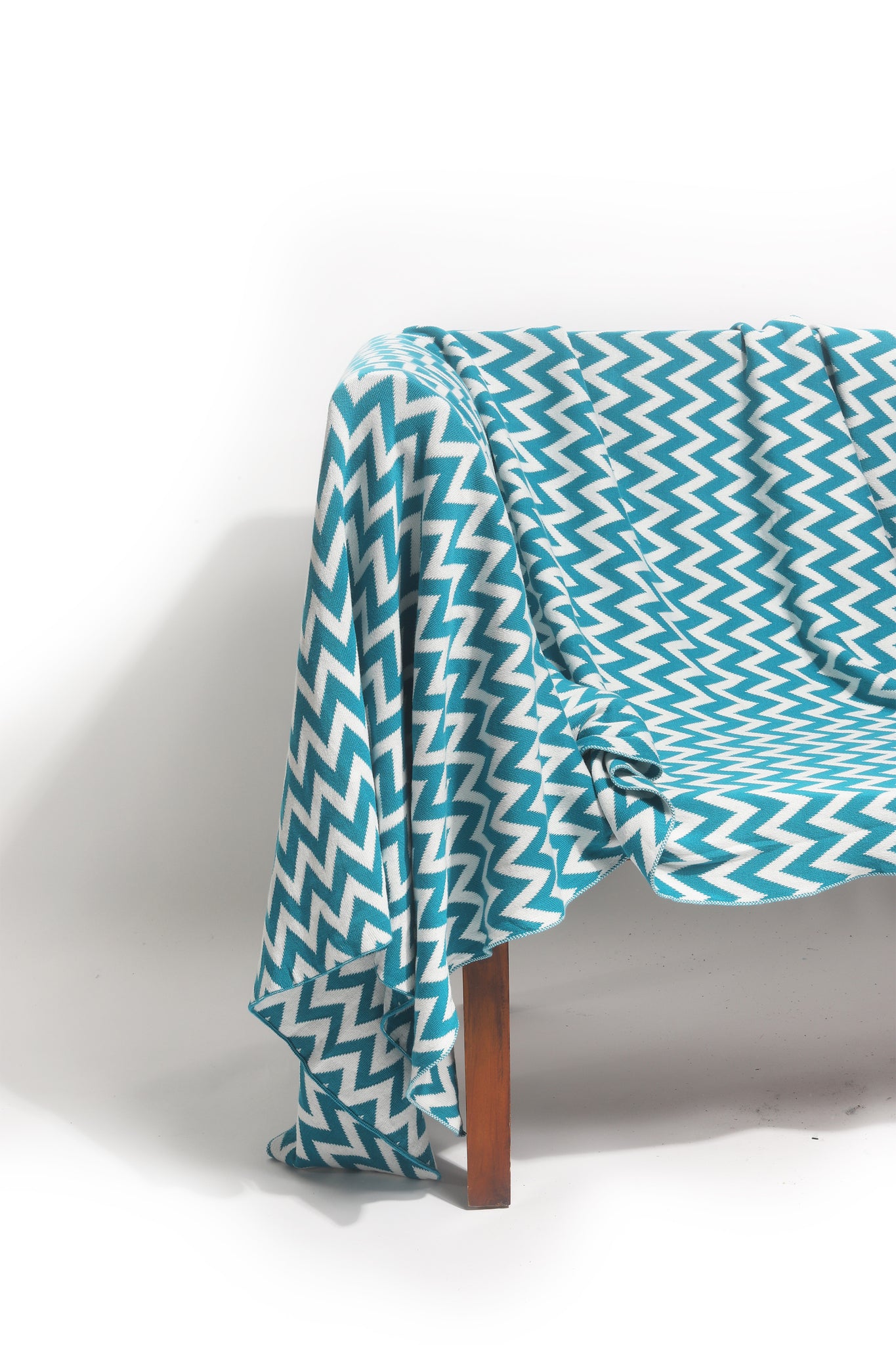 Our Gaya Alegria Throw Blanket Teal Zigzag made of combed cotton is extremely soft and super comfortable.