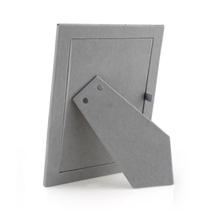 Silver with Light Blush Pink Lacquer, backed with light grey luxury velvet, 15 mm frame. Able to stand both Landscape and Portrait.
