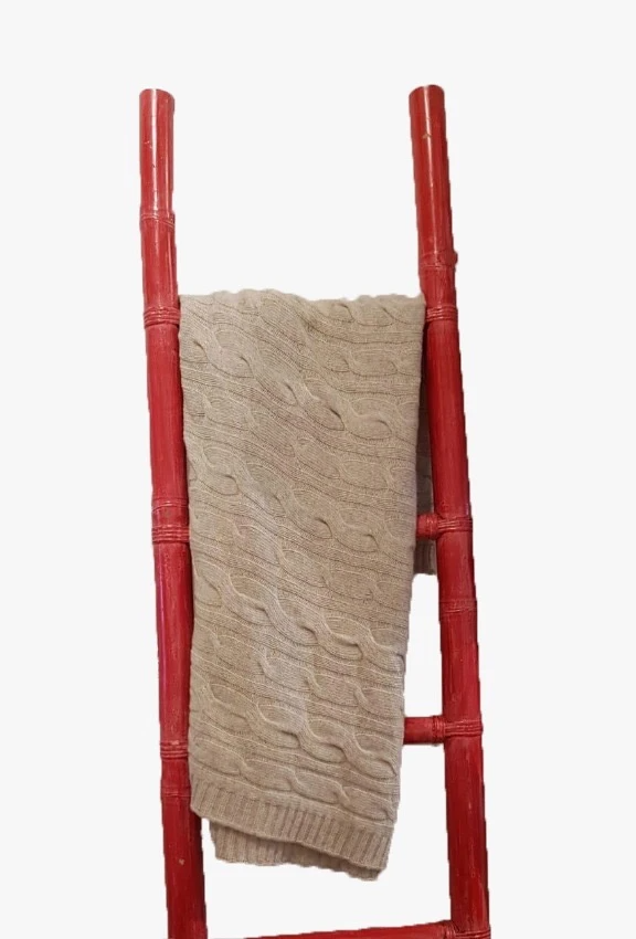 Our "Gaya Alegria" light beige lambswool small cable throw is a